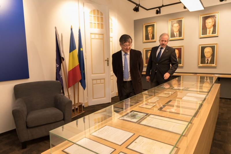 Oaspeții au fost primiți de rectorul UPT, prof.univ.dr.ing. Viorel-Aurel Șerban, și de prorectorul responsabil de relațiile internaționale, prof.univ.dr.ing. Marius Oteșteanu. Împreună au vizitat sala Pro Memoria, unde sunt expuse tablourile rectorilor UPT, de la înființare și până în prezent, precum și documente care atestă istoria și tradiția Politehnicii timișorene.