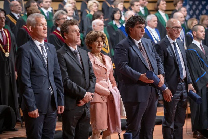 În cadrul ceremoniei, prof.dr. Levente Kovács, rectorul Universității Óbuda, a acordat titluri onorifice unor personalități cu performanțe profesionale remarcabile, recunoscute la nivel internațional. Rectorul Universității Politehnica Timișoara, conf.univ.dr.ing. Florin Drăgan, a fost recompensat cu titlul de Profesor Onorific „pentru realizările sale remarcabile în îmbunătățirea și creșterea calității internaționale a educației, cercetării științifice și activităților academice”.